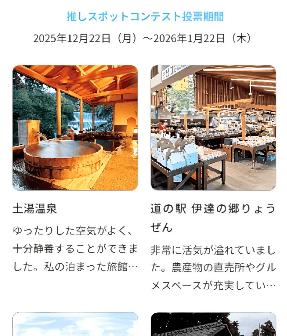みなさんの投稿で、デジタルマップ上に表示される「県北エリアの推しスポット」を増やすことができます!お気に入りの場所とおすすめ情報を投稿して、「推しスポットコンテスト」に参加しましょう。期間中、投票数が多いスポットが新しくデジタルマップに登録されます。