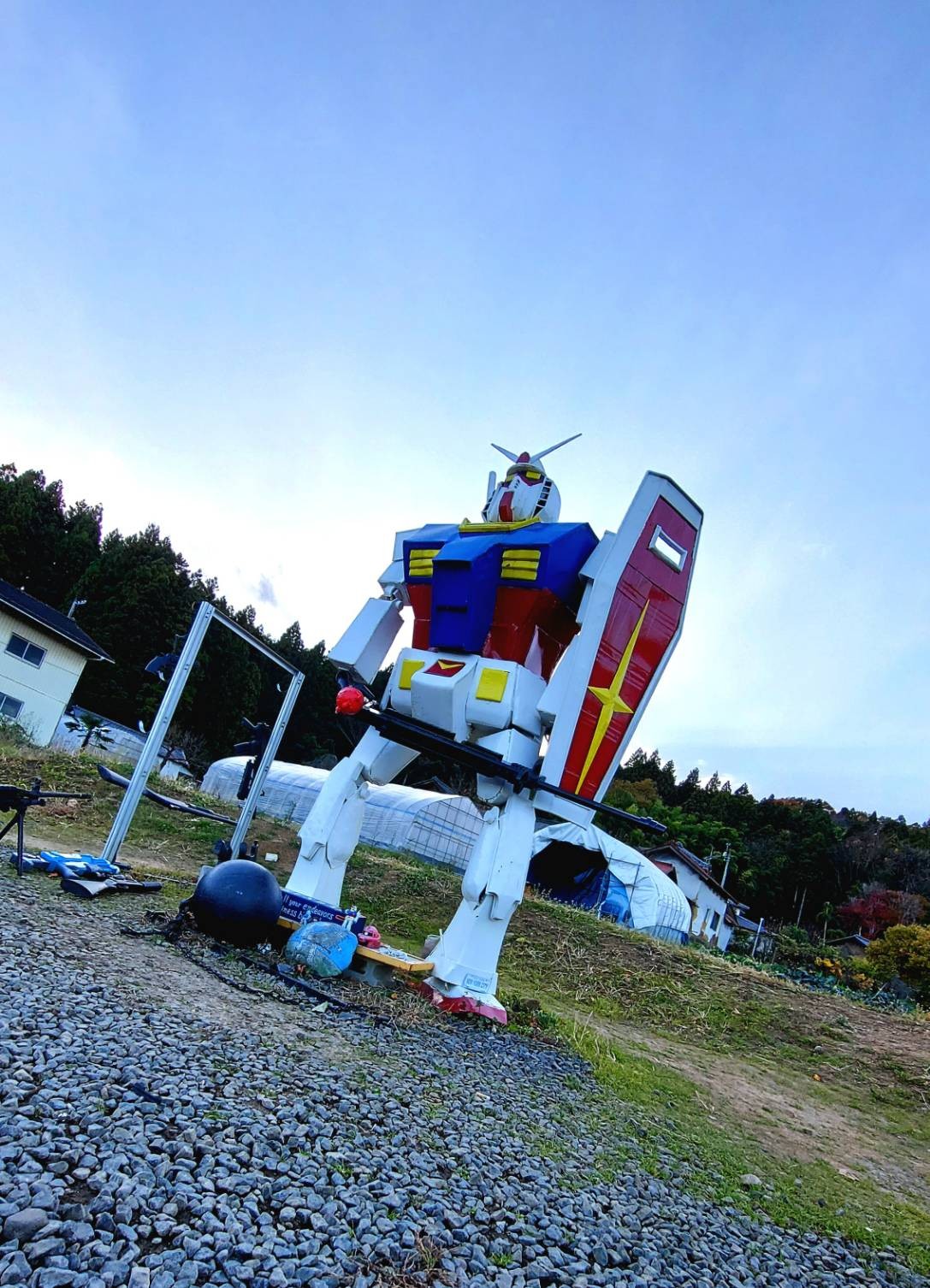 福島市のローカル名物、へたれガンダムを推します! 万博で見れなかった方にもオススメです、後ろ側にはガンダムハンマーなどもあって原作リスペクトもバッチリ!ぜひ会いに来てみてください!!
