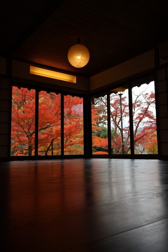夏は緑のモミジ。秋は真っ赤なモミジに癒やされます。