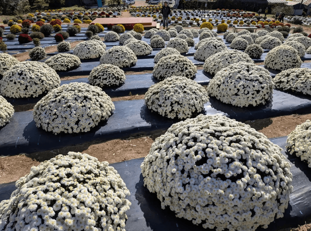 ざる菊が斜面に綺麗に並んでとても綺麗です