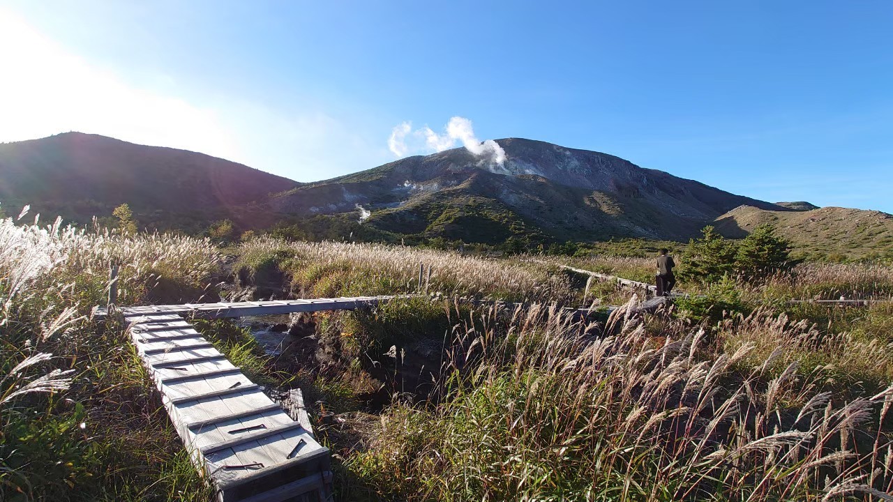 写真は浄土平ビジターセンター横に広がる湿原です。木道が整備されており、雄大な自然を感じながら気軽にお散歩できます。吾妻小富士のふちを一周するのと合わせて散策するのがおすすめです。